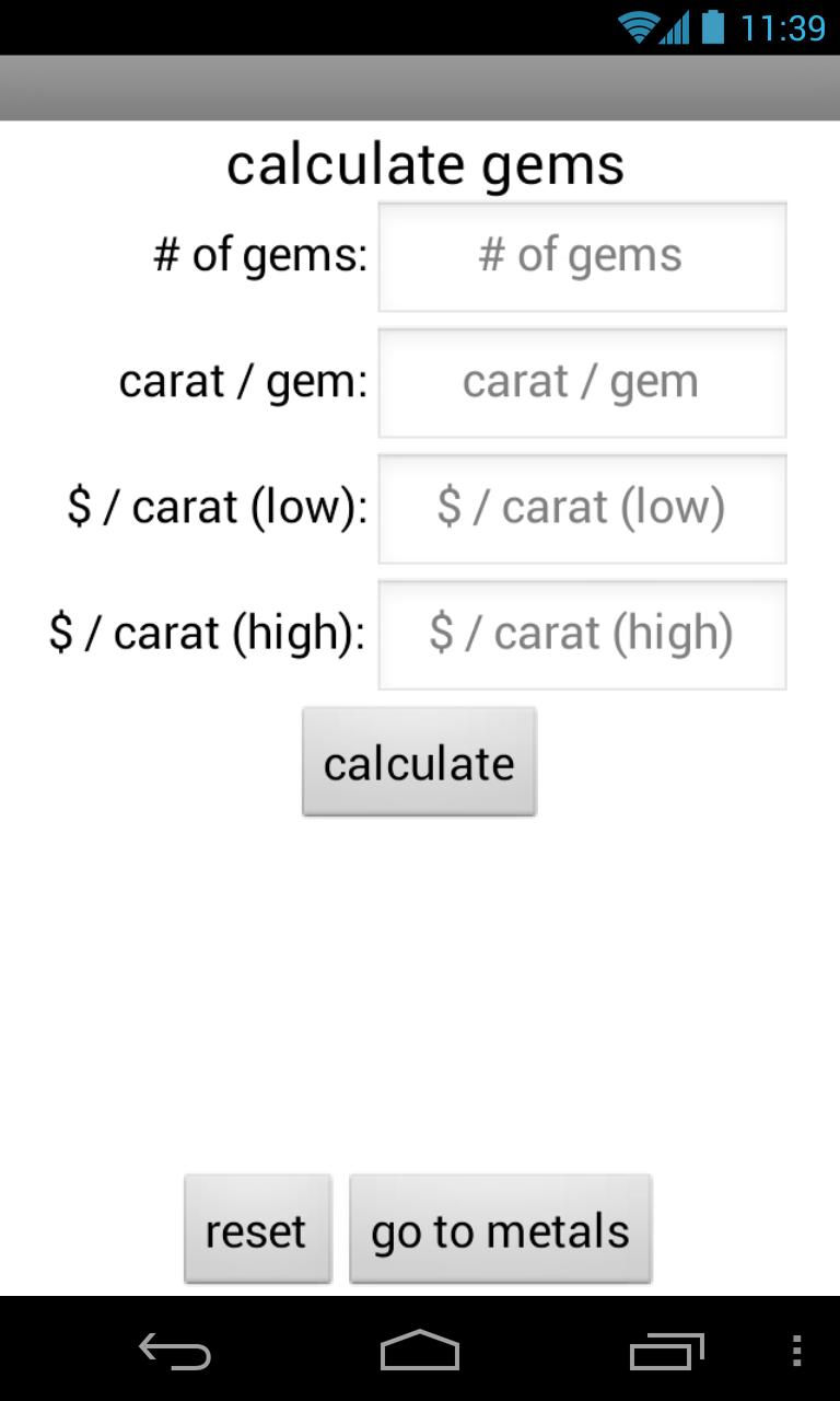 Appraisal Buddy允许您完成珠宝件估值期间所需的基本数学操作,其中包含宝石(钻石,红宝石,蓝宝石...)和贵金属(金,银,白金...)